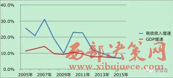 島妹整理了過(guò)去十年的稅收收入增速與GDP增速,趨勢(shì)大體一致。但在絕大多數(shù)年份,稅收增速都遠(yuǎn)高于GDP增速。例如,2010年后的5年,經(jīng)濟(jì)增速下滑, 下行壓力增大,企業(yè)也遭遇了成本升高、利潤(rùn)下降的現(xiàn)實(shí)困境,然而除了稅收收入增速依然高于GDP增速,直到去年,隨著大量企業(yè)盈利能力繼續(xù)下降、經(jīng)濟(jì)“脫 實(shí)向虛”的問(wèn)題更為嚴(yán)重,稅收收入增速才略低于后者0.3個(gè)百分點(diǎn)。
