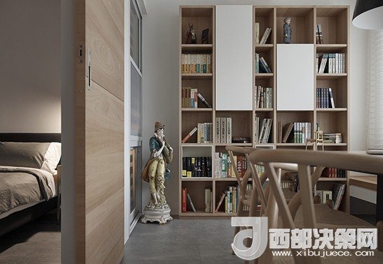 簡約的木制風(fēng)格中加上一把色調(diào)一致的藤椅,表現(xiàn)出了一種舊時(shí)的情懷。