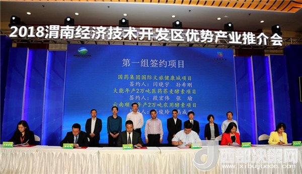 省質(zhì)監(jiān)局質(zhì)量監(jiān)督處處長張泉生,市食藥局黨組書記、局長王建軍,市商務(wù)局副局長李爭良、市工信局副局長孟宗憲,市外經(jīng)局副局長郭向陽、市質(zhì)監(jiān)局總工程師井西娥等省市領(lǐng)導(dǎo)出席推介會(huì)并見簽。經(jīng)開區(qū)黨群工作部部長閆曉宇,管委會(huì)副主任段宏偉、馬俊玲上臺(tái)簽約。此次簽約的項(xiàng)目包括有總投資30億元的國藥健康文旅城項(xiàng)目,總投資1億元的大能年產(chǎn)2萬噸醫(yī)藥蕎麥酵素項(xiàng)目,總投資3億元的陜西順天年2萬噸農(nóng)用酵素項(xiàng)目;總投資1.2億元的年產(chǎn)1萬噸功能性酵素和酵素飲品項(xiàng)目、總投資8000萬元的陜西宜康神年產(chǎn)5000噸蘆薈酵素項(xiàng)目和總投資6000萬元的陜西弘康生物科技股份有限公司特色植物提取項(xiàng)目;總投資8000萬元的綠盛農(nóng)業(yè)科技有限責(zé)任公司農(nóng)用酵素運(yùn)營示范中心項(xiàng)目、總投資5400萬元的信德緣復(fù)合果蔬酵素項(xiàng)目和總投資6000萬元的渭南市藥材公司年產(chǎn)1000噸葡萄酵素項(xiàng)目。