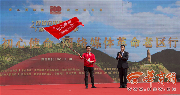主會場活動結(jié)束后,陜西分會場“在這里讀懂初心使命——網(wǎng)絡(luò)媒體革命老區(qū)行”網(wǎng)絡(luò)主題采訪活動在延安寶塔山游客廣場正式啟動。趙剛在分會場啟動儀式上講話并向采訪團授旗。陜西省委網(wǎng)信辦主任鮑永能主持啟動儀式。中央網(wǎng)信辦網(wǎng)絡(luò)傳播局副局長邵波濤,陜西省委網(wǎng)信辦副主任王利參加啟動儀式。延安市委副書記、政法委書記嚴(yán)漢平在啟動儀式上致辭。媒體團代表中國新聞網(wǎng)負責(zé)人吳慶才作表態(tài)發(fā)言。