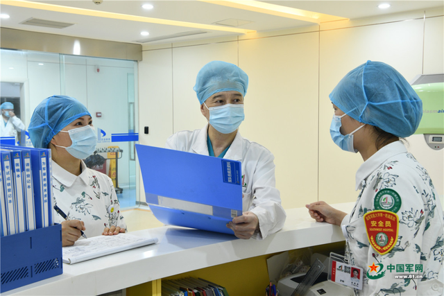 毛青在護士站查看科室為軍服務(wù)執(zhí)行情況。張永進 攝