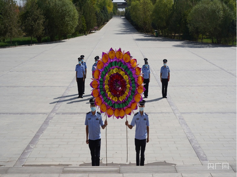 民警們向紀念碑敬獻花圈。邱柯兵 攝 央廣網(wǎng)發(fā)