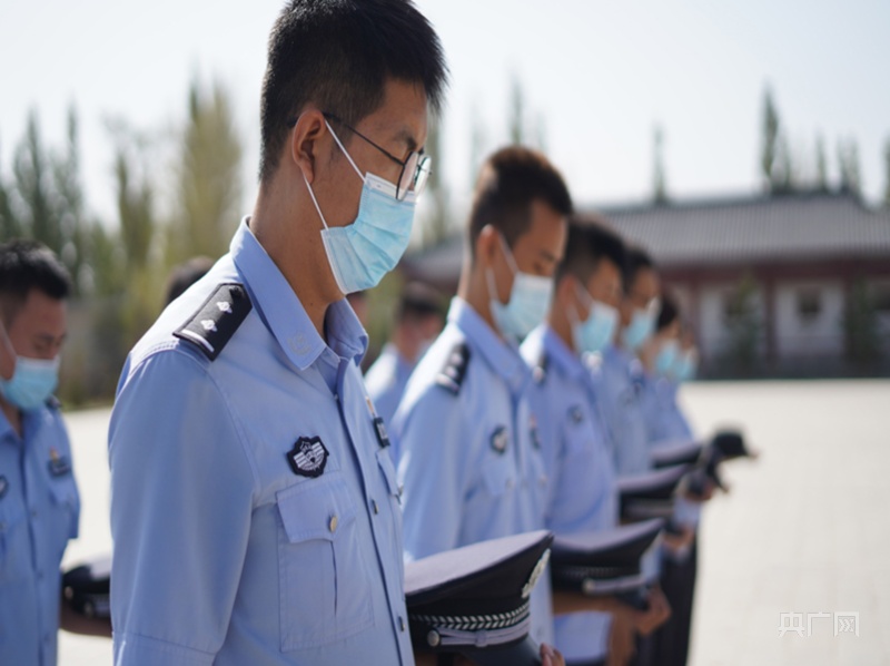 民警們面向紀念碑默哀。 邱柯兵 攝 央廣網(wǎng)發(fā)