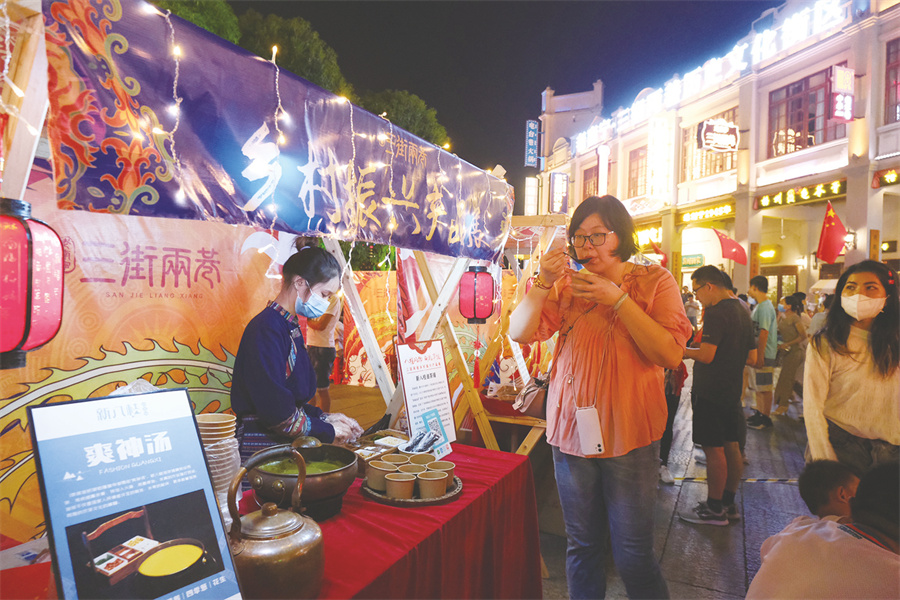 據(jù)悉,國(guó)慶期間,有關(guān)部門還在“三街兩巷”舉辦“八桂風(fēng)物 獻(xiàn)禮華誕——助力鄉(xiāng)村振興特色展”,展示展銷北海潿洲島特色干海味、玉林博白特色牛巴、永福羅漢果花茶等特色農(nóng)副產(chǎn)品,以及龍勝侗族扎染技藝、靖西壯族藍(lán)染技藝等廣西非物質(zhì)文化遺產(chǎn)工藝產(chǎn)品,鞏固脫貧攻堅(jiān)成果、助力鄉(xiāng)村振興。(記者宋延康)