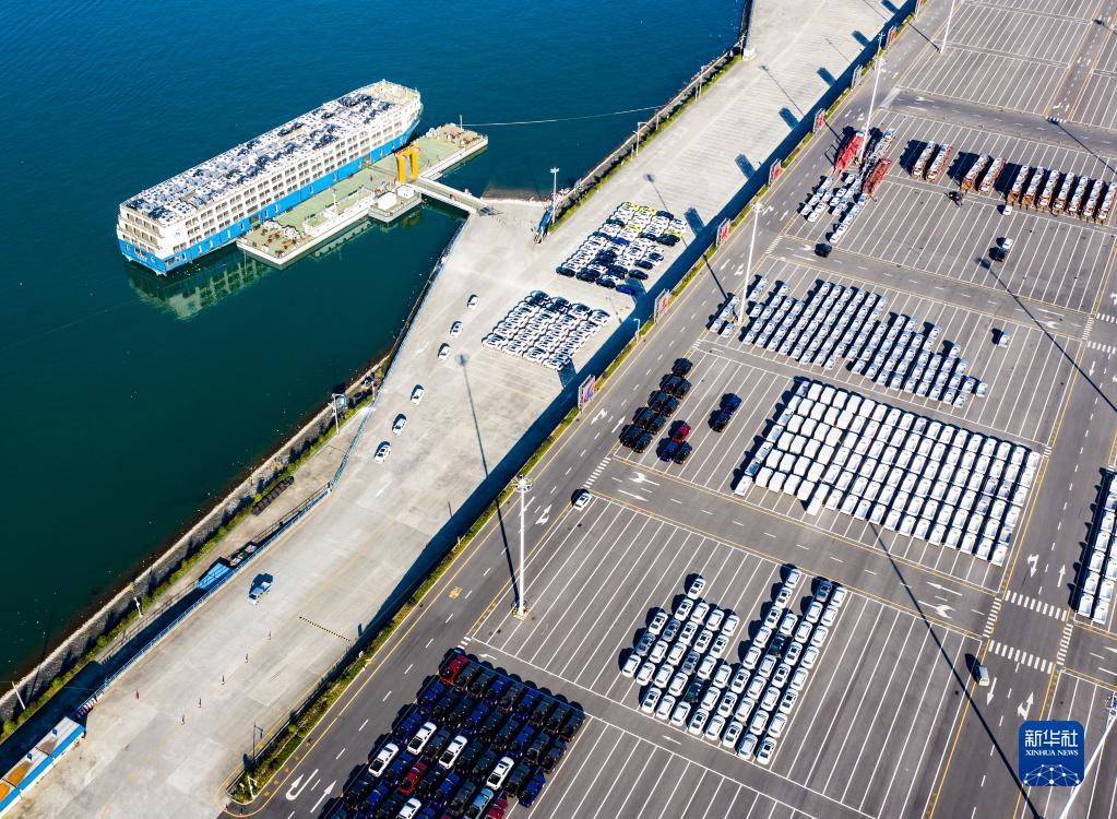 這是三峽庫區(qū)湖北省宜昌市秭歸縣秭歸港車輛分撥轉(zhuǎn)運(yùn)現(xiàn)場(2020年11月13日攝,無人機(jī)照片)。新華社發(fā)(鄭家裕 攝)