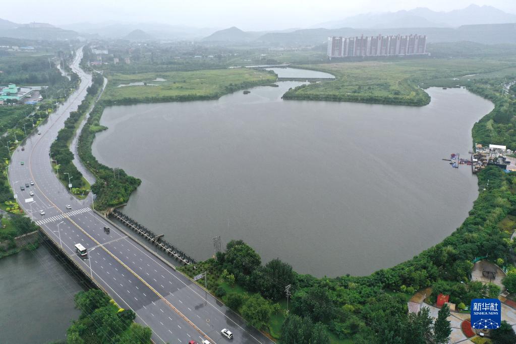 這是遼寧省鞍山市高新區(qū)火炬廣場前的南沙河水域(8月20日攝,無人機照片)。 新華社記者 姚劍鋒 攝