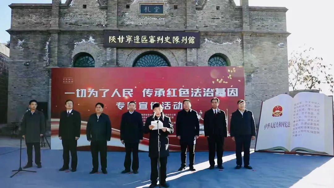 11月30日下午,由司法部普法與依法治理局指導,中共陜西省委依法治省辦、省委普法辦、省司法廳主辦,延安市中級人民法院、延安市司法局承辦的“一切為了人民—傳承紅色法治基因”專題宣傳活動在陜甘寧邊區(qū)高等法院舊址舉辦。