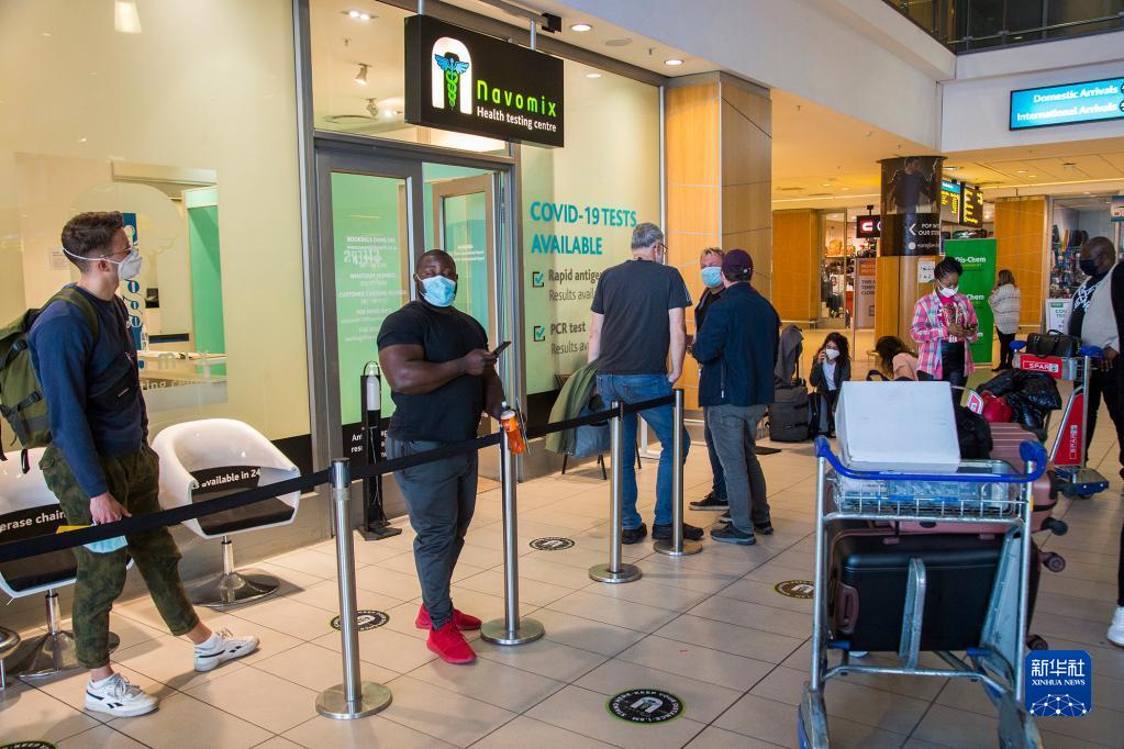 旅客在南非開普敦國際機(jī)場等待接受新冠病毒檢測(cè)(2021年11月29日攝)。為防范新冠變異病毒奧密克戎毒株傳播,多國對(duì)南非等非洲國家的航班和旅客實(shí)施入境限制,并升級(jí)防控措施。新華社發(fā)(弗克攝)