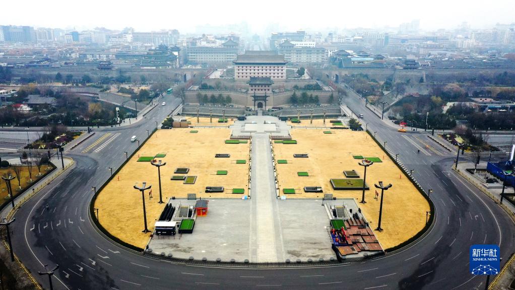 12月23日拍攝的西安永寧門(mén)外盤(pán)道(無(wú)人機(jī)照片)。新華社記者 劉瀟 攝