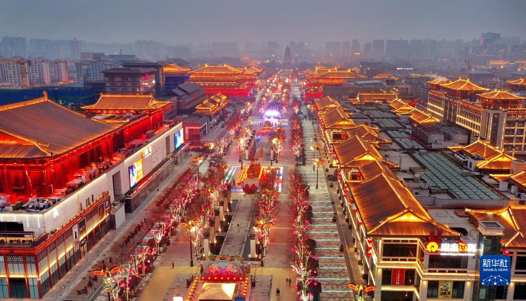 1月21日拍攝的大唐不夜城(無人機(jī)照片)。新華社記者 陶明 攝