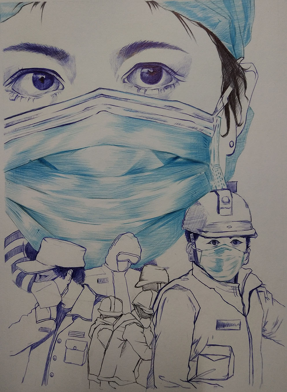 2021年12月,新冠肺炎疫情在西安突然暴發(fā),面對(duì)突如其來的疫情和嚴(yán)峻復(fù)雜的防控形勢(shì),在加強(qiáng)落實(shí)疫情防控、保障師生健康的同時(shí),西安工程大學(xué)服裝與藝術(shù)設(shè)計(jì)學(xué)院積極應(yīng)對(duì),組織全院師生有序、規(guī)范開啟2021年秋季期末課程結(jié)課的線上教學(xué)。任課教師及時(shí)調(diào)整結(jié)課作業(yè)主題,充分利用視覺傳達(dá)設(shè)計(jì)專業(yè)特點(diǎn),組織同學(xué)們嚴(yán)謹(jǐn)認(rèn)真、激情飽滿地用畫筆以藝抗疫,致敬最美逆行者!