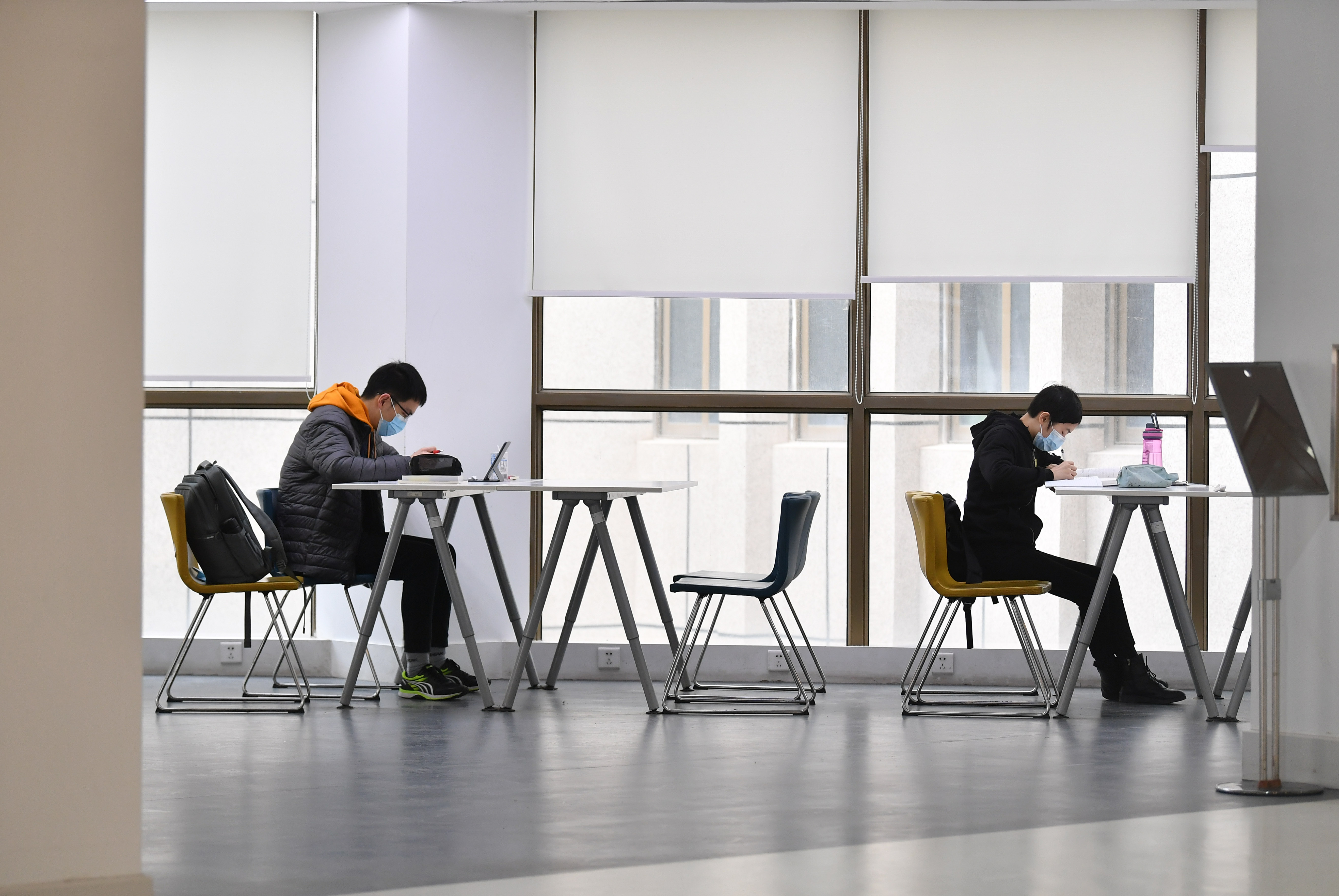 1月29日,留校學(xué)生在西安交通大學(xué)興慶校區(qū)圖書館自習(xí)。