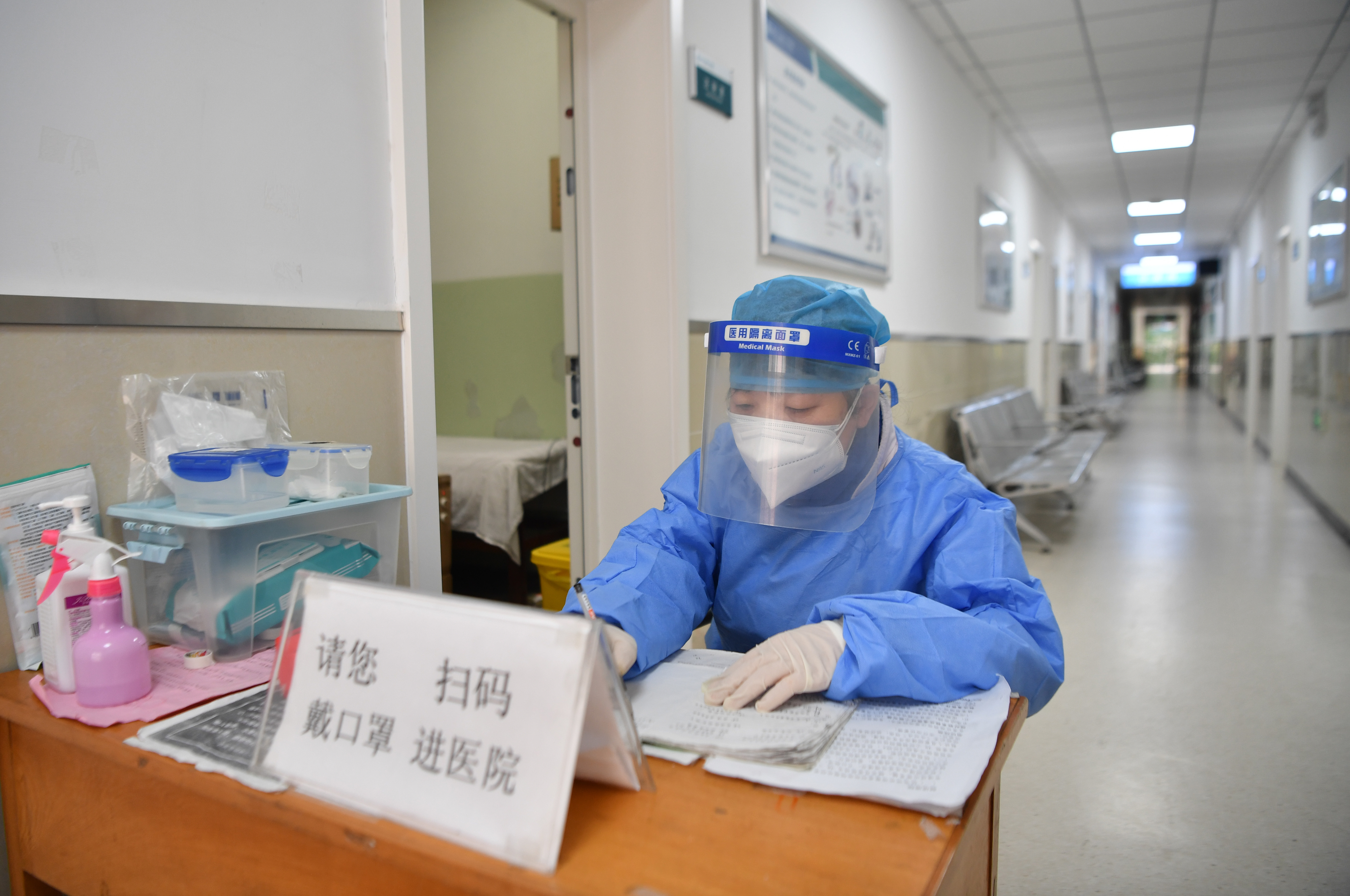 1月29日,醫(yī)生在西安交通大學(xué)興慶校區(qū)校醫(yī)院工作。新華社記者 張博文 攝