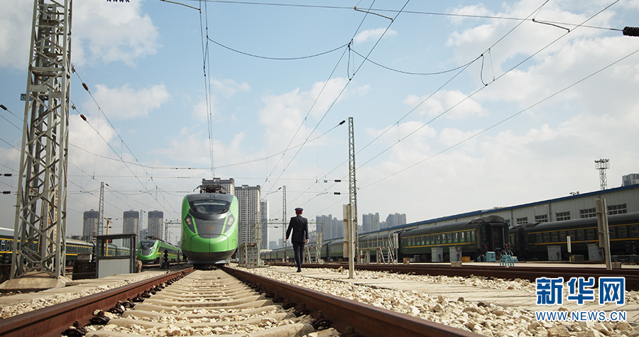 2019年8月,胡堅(jiān)聽(tīng)說(shuō)昆明至河口即將開(kāi)行“復(fù)興號(hào)”動(dòng)車(chē)組列車(chē),憑著自己多年值乘這條線路的經(jīng)驗(yàn)以及嫻熟的技術(shù)水平,爭(zhēng)取到了駕駛新型機(jī)車(chē)的機(jī)會(huì),如愿以?xún)敵蔀橐幻?ldquo;復(fù)興號(hào)”動(dòng)車(chē)組司機(jī)。由于他技術(shù)過(guò)硬,很快成為車(chē)隊(duì)中堅(jiān)力量。(新華網(wǎng) 范芳鈺/文 劉東/攝)