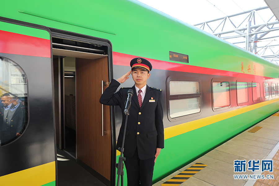 2021年12月3日,中老鐵路正式通車(chē),開(kāi)辟了中國(guó)國(guó)際鐵路運(yùn)輸新紀(jì)元,那一天,胡堅(jiān)站在站臺(tái)上,代表中國(guó)鐵路火車(chē)司機(jī)請(qǐng)示發(fā)車(chē)。(新華網(wǎng) 范芳鈺/文 昆明機(jī)務(wù)段供圖)