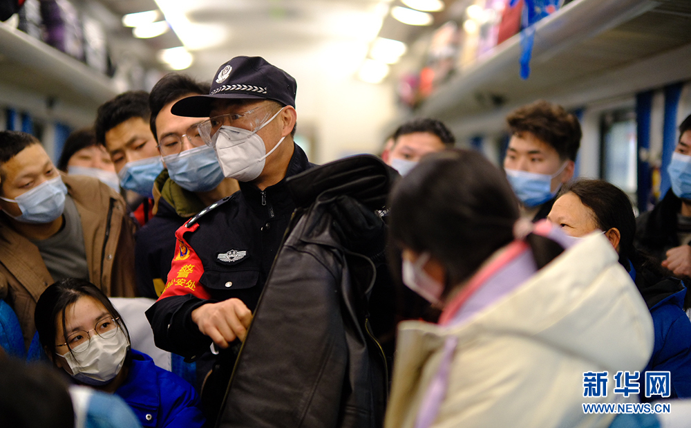 慢慢地夜幕降臨,很多乘客開始有了疲倦感。蔣大兵又巡查每節(jié)車廂,不斷提醒大家乘車期間做好安全防范:獨(dú)自乘車不要睡著了,有同行人員的可以換著休息一下。