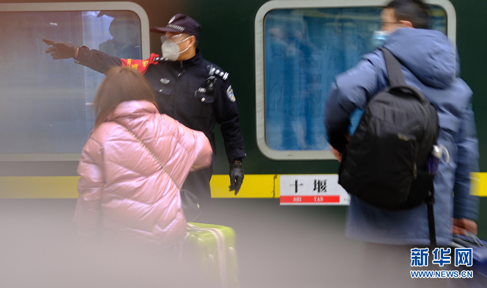 “請(qǐng)大家看好隨身物品,依次上車,不要擁擠。”2月7日是節(jié)后返程客流高峰時(shí)刻,當(dāng)天11:20許,在湖北十堰火車站站臺(tái),一位聲音洪亮、神采奕奕的乘警來(lái)回走在列車旁,一邊維護(hù)乘車秩序,一邊提醒乘客有序上車。