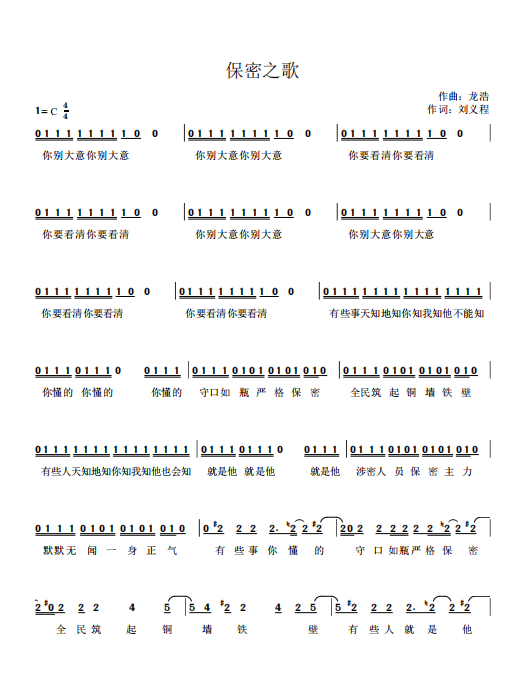 慶祝建黨百年獲獎(jiǎng)歌曲作品選集——《保密之歌》詞曲。