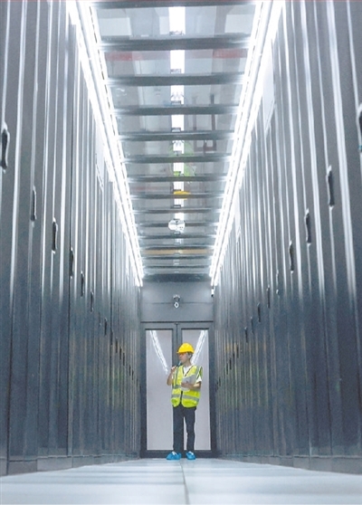 近年來(lái),貴州省全力實(shí)施大數(shù)據(jù)戰(zhàn)略行動(dòng),數(shù)字經(jīng)濟(jì)增速全國(guó)領(lǐng)先,給當(dāng)?shù)厝罕娚a(chǎn)生活方式帶來(lái)顯著改變。圖為工作人員在中國(guó)移動(dòng)貴陽(yáng)數(shù)據(jù)中心機(jī)房?jī)?nèi)巡檢。 |