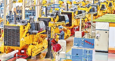 近年來(lái),山東山推工程機(jī)械股份有限公司積極響應(yīng)“一帶一路”倡議,主要產(chǎn)品在“一帶一路”沿線(xiàn)均有銷(xiāo)售。圖為在山推總裝車(chē)間,工人正在作業(yè)。 |