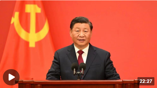 在中國共產(chǎn)黨第二十屆中央委員會第一次全體會議上當(dāng)選的中共中央總書記習(xí)近平和中共中央政治局常委李強、趙樂際、王滬寧、蔡奇、丁薛祥、李希,23日中午在人民大會堂同采訪中共二十大的中外記者見面。習(xí)近平發(fā)表重要講話。
