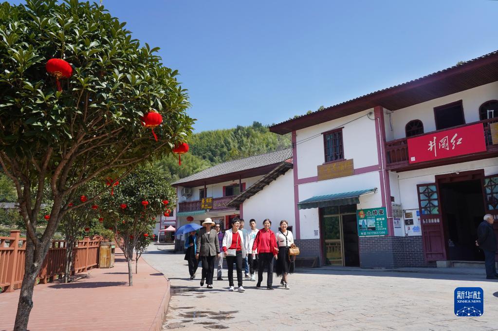 10月16日,游客在江西井岡山神山村旅游觀光。新華社記者 萬象 攝