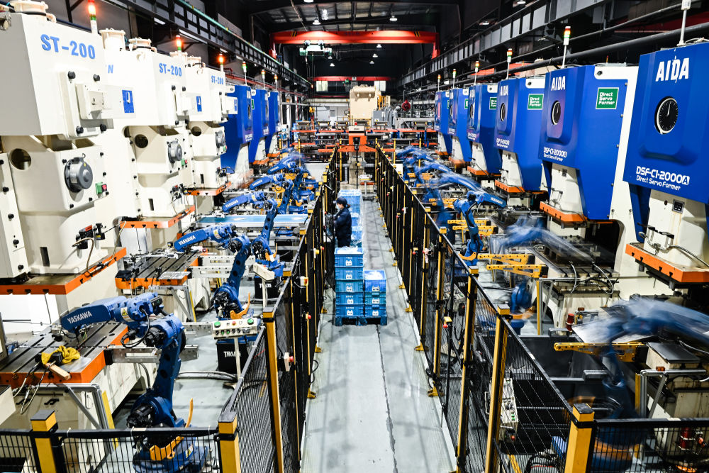 2024年2月28日,在“江蘇省專精特新中小企業(yè)”無錫微研精工科技有限公司智能生產(chǎn)車間,機(jī)械臂在作業(yè)。新華社記者 季春鵬 攝