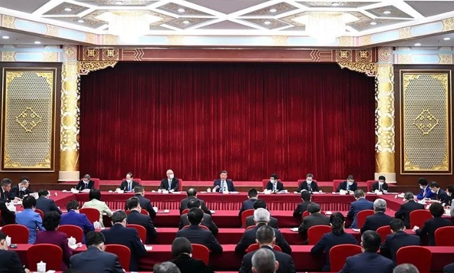 2023年3月6日,習(xí)近平看望參加全國(guó)政協(xié)十四屆一次會(huì)議的民建、工商聯(lián)界委員,并參加聯(lián)組會(huì),聽取意見和建議。新華社記者 謝環(huán)馳 攝