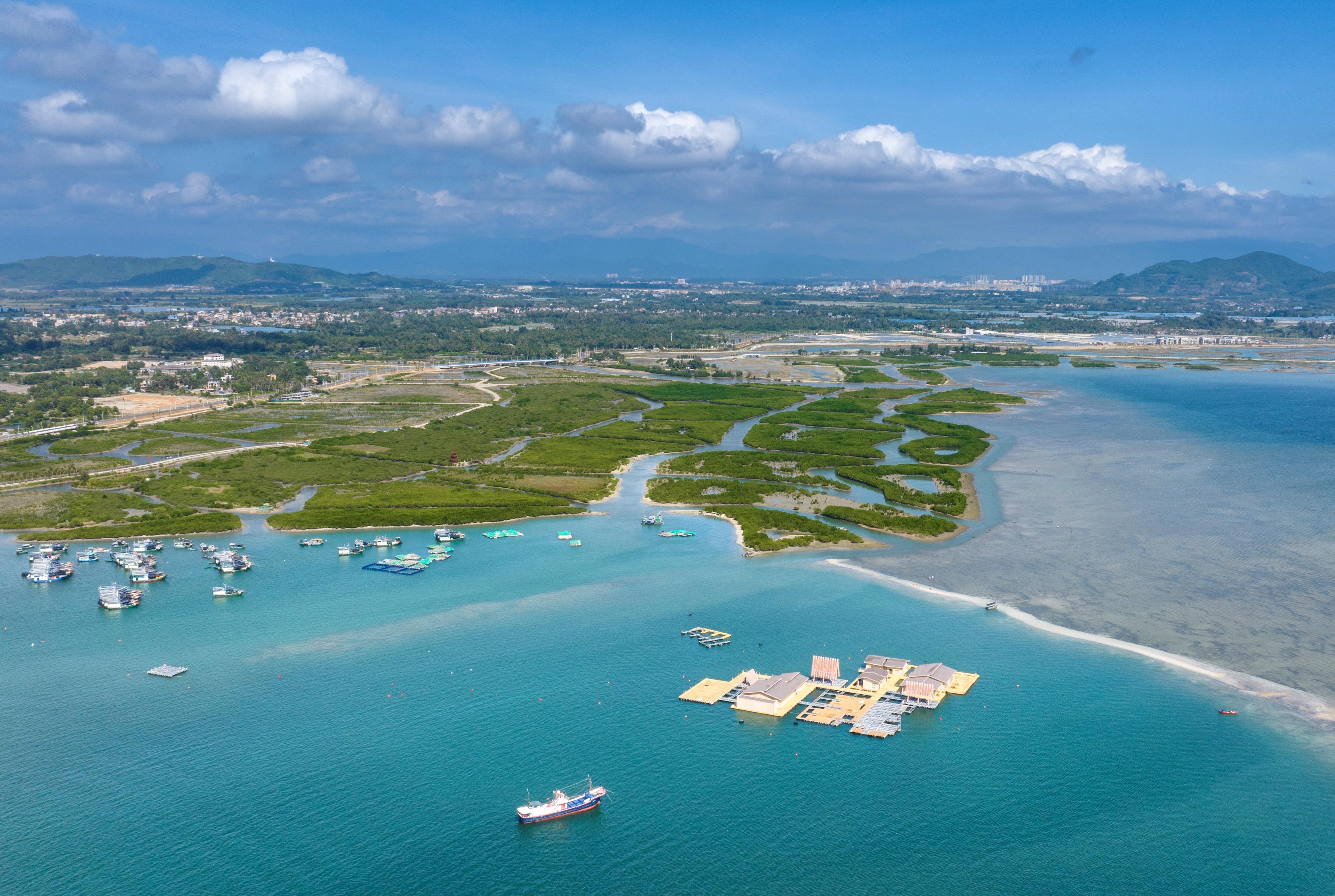 △海南陵水紅樹林國家濕地公園。紅樹林素有“海岸衛(wèi)士、鳥類天堂、魚蝦糧倉”的美譽(yù),在凈化海水、防風(fēng)消浪、維持生物多樣性、固碳儲碳等方面發(fā)揮著極為重要的作用。