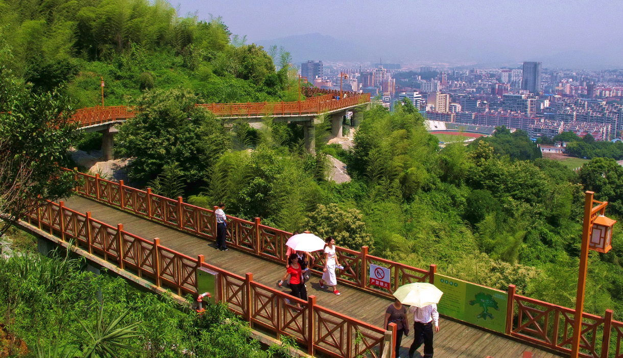 蓮花山底南環(huán)路地面標(biāo)高為330米,山頂標(biāo)高為490.606米,山高160米左右,山頂已開(kāi)發(fā)為休閑場(chǎng)所,并建有世紀(jì)鐘樓,山腳可挖掘的景點(diǎn)不多,因此決定在半山腰開(kāi)辟一條市民休閑的木棧道,將公園增加一個(gè)休閑觀(guān)光的好場(chǎng)所,并可成為蓮花山一道亮麗的風(fēng)景線(xiàn)。因此在半山腰422米高程建設(shè)一條環(huán)山的木棧道。為盡量少破壞山體植被,木棧道采用棧道橋形式,全長(zhǎng)3781.88米,全寬3.5米(包括欄桿寬度),凈寬3.0米,蓮花山棧道橋工程總投資7610萬(wàn)元。
