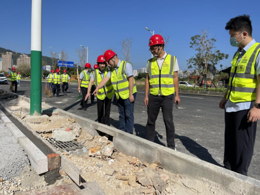 在檢查現(xiàn)場,檢查組一行認真查看道路施工安全隱患,并要求施工單位立即整改,同時,市政集團黨支部書記、董事長徐旺興還強調(diào),一要嚴(yán)把質(zhì)量關(guān),強化質(zhì)量監(jiān)督,抓質(zhì)量的同時還要重安全,堅持“標(biāo)準(zhǔn)化、規(guī)范化、程序化”作業(yè),施工過程嚴(yán)格按照操作規(guī)程施工,嚴(yán)禁違章施工,確保安全生產(chǎn);二要排除安全隱患,對檢查中發(fā)現(xiàn)的安全問題要及時與項目負責(zé)人對接溝通,并正式通車前逐項整改,不留死角;三要強化全局意識,完善工作機制,施工和監(jiān)理單位要緊密協(xié)調(diào)配合,提高工作效率,嚴(yán)控時間節(jié)點,全力以赴打好項目攻堅戰(zhàn),確保如期通車,為廣大群眾提供“優(yōu)質(zhì)、安全、舒適”的通行環(huán)境。