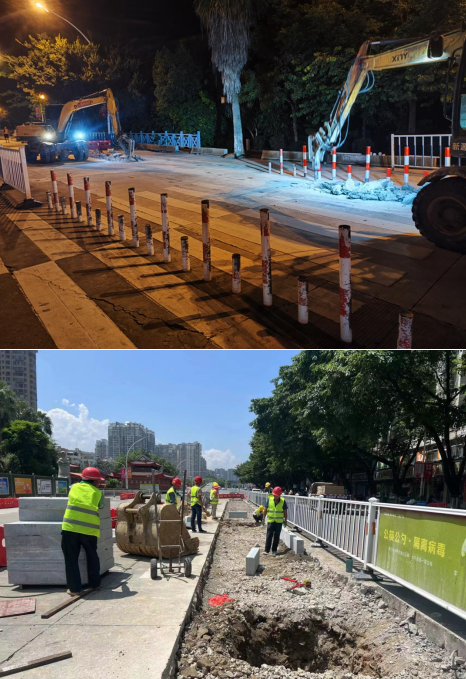 小溪路口地處老城區(qū)、蓮東片區(qū)、新城區(qū)交界處,群眾反映該路口交通標(biāo)識(shí)不清、行人過(guò)街不便等,存在安全隱患,為此,市委、市政府及市住建局等相關(guān)部門(mén)高度重視,決定由市政集團(tuán)所屬企業(yè)市城投公司對(duì)該路段實(shí)施提升改造,重點(diǎn)實(shí)施道路白改黑、雨污分流改造、綠化提升、道路標(biāo)識(shí)完善、交通安全設(shè)施提升等建設(shè),項(xiàng)目總投資約3500萬(wàn)元。工程于7月下旬開(kāi)工建設(shè),目前正在進(jìn)行混凝土病害處理、雨水管網(wǎng)開(kāi)挖鋪設(shè)、路沿石安裝及各管線(xiàn)遷改等施工作業(yè)。